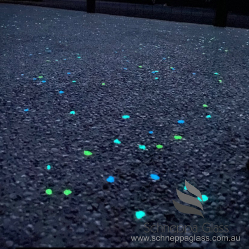 Schneppa Recycled Crushed Glass is Australia’s trusted supplier of recycled crushed glass for decorative concrete, driveways, pathways, benchtops, and landscaping projects. Our coloured glass, mirror glass, clear crushed glass, and PolyGlow™ glow stones are used by builders, architects, and designers across Australia to create bold, long-lasting finishes.