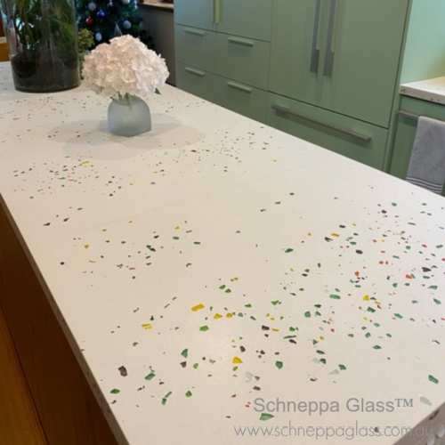 Frost White, Mocha & Jet Black 5-10mm glass piecesstone benchtop